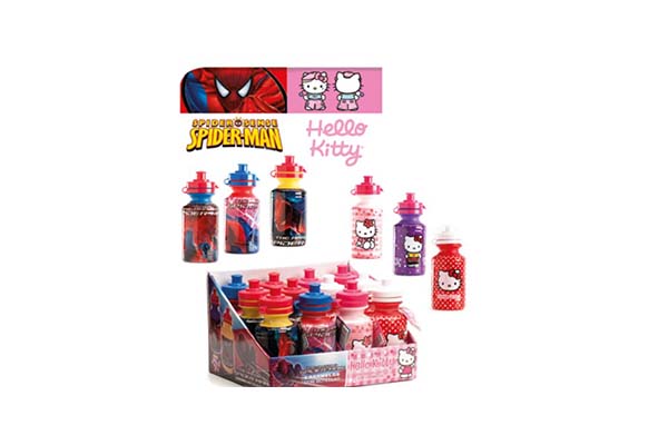 12 unids. botella Hello Kitty y Spiderman con caramelos